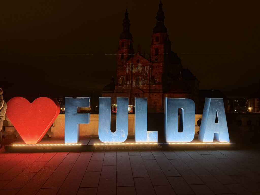 Weihnachtssingen auf dem Domplatz mit 12.000 Menschen – Sehr beeindruckend. Da kommt Weihnachtsstimmung auf.Schön war`s.Tschüss Fulda.